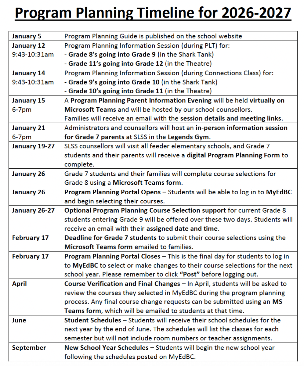 Program Planning and Course Selection Process/Timeline for Next School Year (2026-2027)
